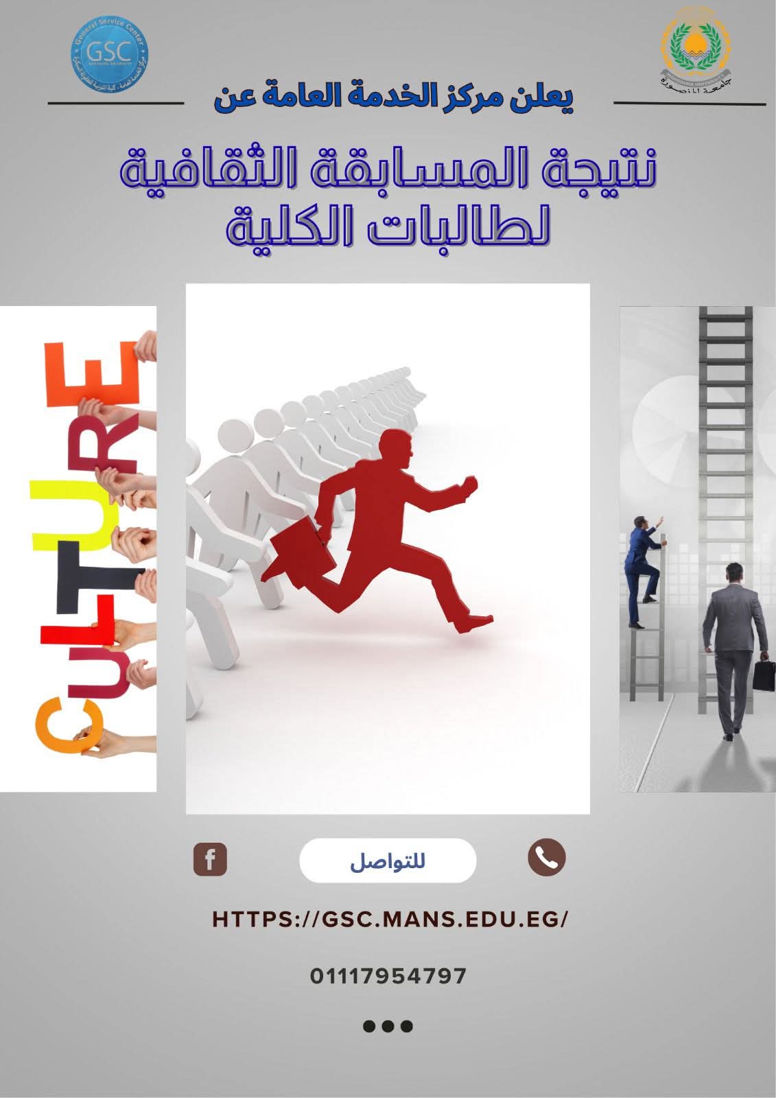 ✍️ في إطار حرص الكلية على دعم وتشجيع الطالبات على التميز والمشاركة الإيجابية في الأنشطة الثقافية والعلمية، يسر إدارة المركز الإعلان عن نتائج المسابقة الثقافية للطالبات.